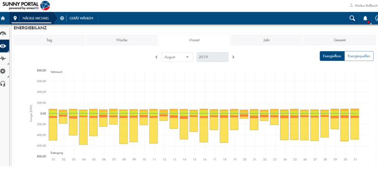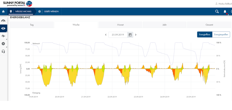 Clearly displayed and easily accessible viewing of the energy flows located in Sunny Portal powered by ennexOS, or in the future SMA Energy app