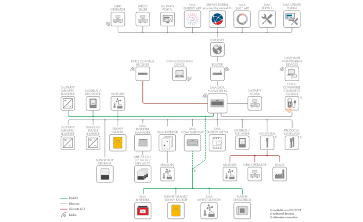An overview of the Data Manager M and Sunny Portal functions can be found in the data sheet as well as in a more detailed function overview (above under DOWNLOADS).