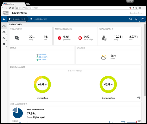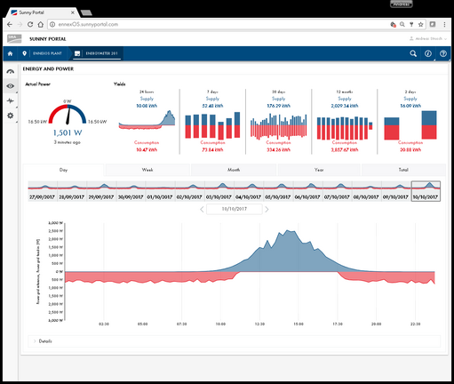 The Data Manager M and the new Sunny Portal powered by ennexOS are perfectly coordinated with each other. This not only makes it easier to monitor, analyze, parameterize and manage PV systems, but also helps save time and money.