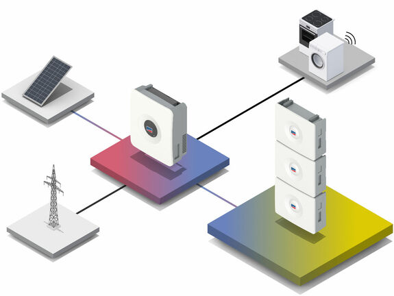 Solar batteries save the energy generated by a PV system so that it can be used at some point in the future, for example in the evening or at night. Like car batteries, solar batteries save electrical energy in chemical form – and instantly convert it back to electrical energy as soon as it is needed. This process takes place in a ’battery cycle’. The solar batteries developed by SMA have around 8,000 battery cycles, for example, which is generally enough to last at least ten years before the battery capacity gradually diminishes.
