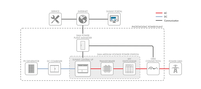 Delivered pre-configured within a 20' HC shipping container that easily converts into an installation-ready platform, the system is simple to transport and quick to assemble and commission. The SMA Medium Voltage Power Station combines the highest plant safety with maximum energy yield and minimized logistical and operating risk for large scale PV power plant projects.
